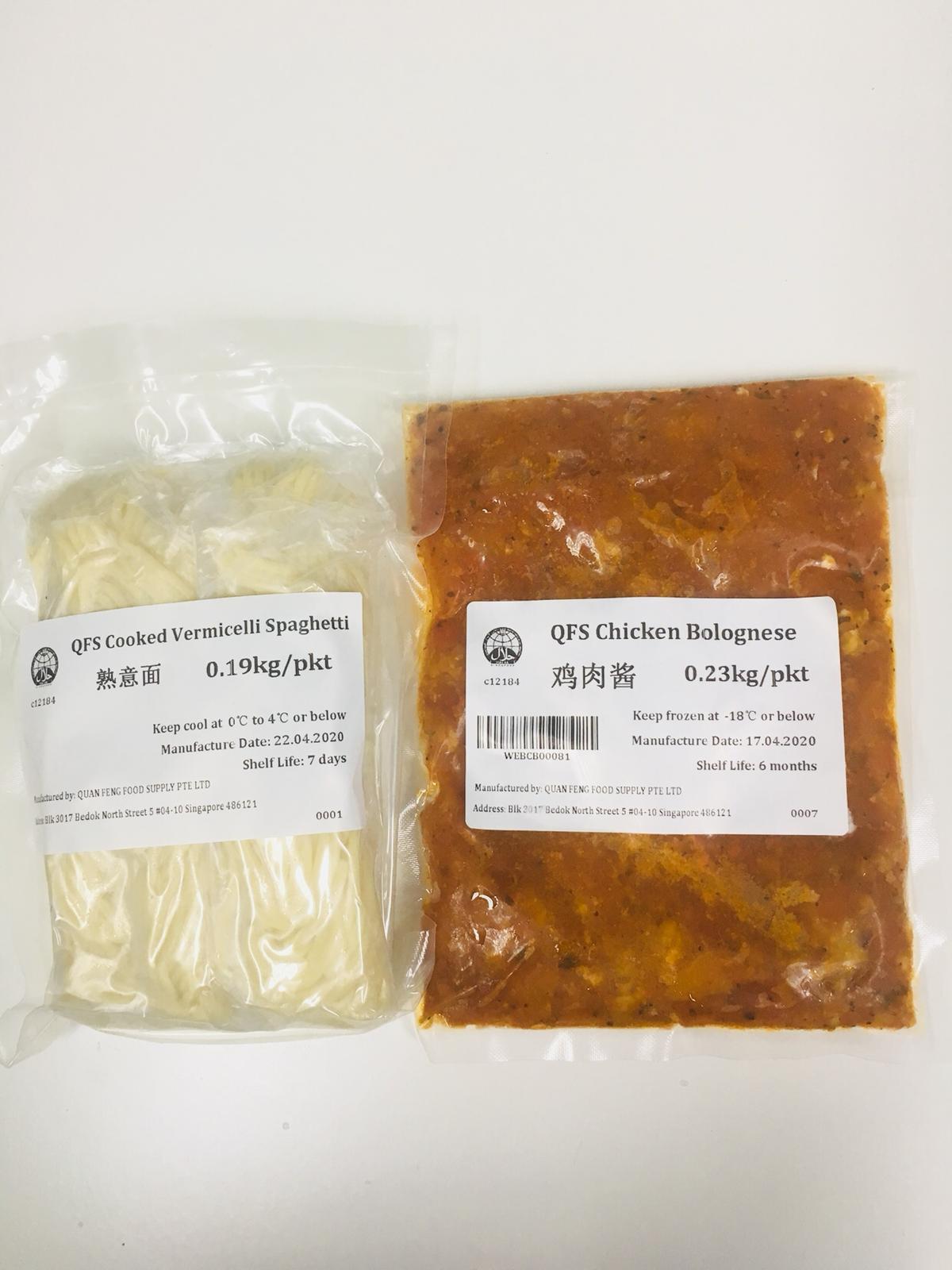 The product is portioned for 1 person for convenience.  The Vermicelli Spaghetti is already cooked and can be heated up with Chicken Bolognese sauce.  Add any additional ingredients if desired.