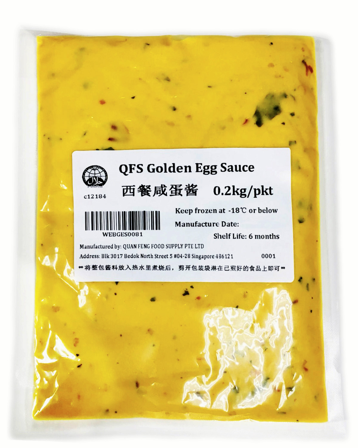 One of our best sellers. Best prepared with chicken or pork chop. Coat the meat chops with breaded flour, and pan fry until golden & crispy. Heat up QF Golden Egg Sauce by frying, then drizzle over the fried meat chops. Suitable with battered seafood like prawns and squid. Or can be used as a dip with roti.