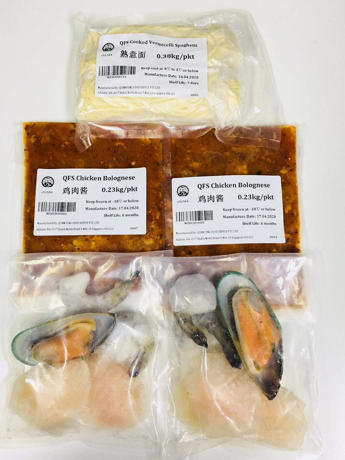 The product is portioned for 2 people for convenience. The Vermicelli Spaghetti is already cooked and can be heated up with Chicken Bolognese sauce and seafood. Add any additional ingredients if desired.
